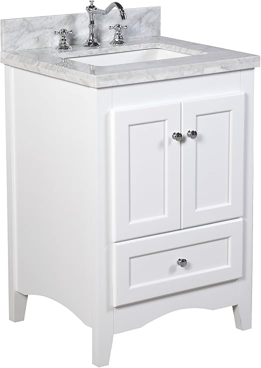 Amazon Com Abbey 24 Inch Bathroom Vanity Carrara White Includes White Cabinet With Authentic Italian Carrara Marble Countertop And White Ceramic Sink Home Improvement